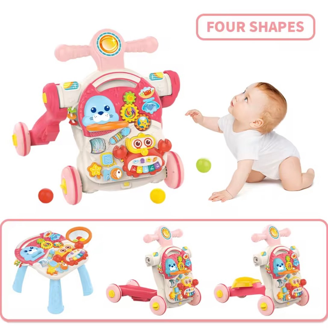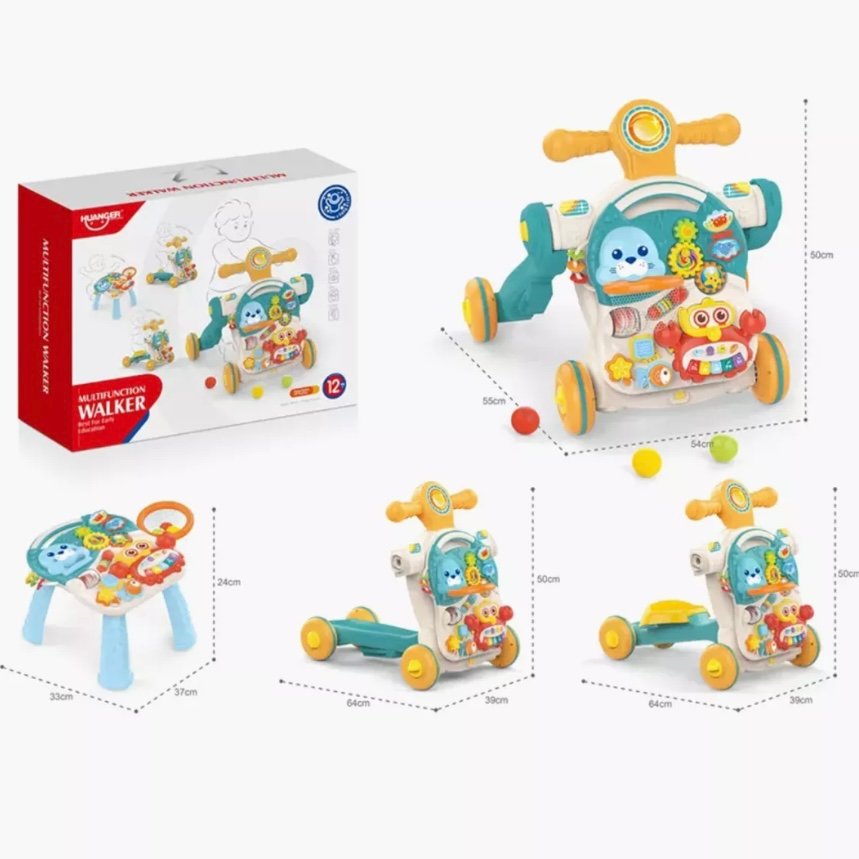 Ce trotteur multifonction 4-en-1 aide bébé à faire ses premiers pas tout en stimulant sa motricité et sa curiosité. Grâce à ses activités colorées, ses textures variées et ses fonctions musicales, il offre une expérience d’éveil complète, amusante et sécurisée.